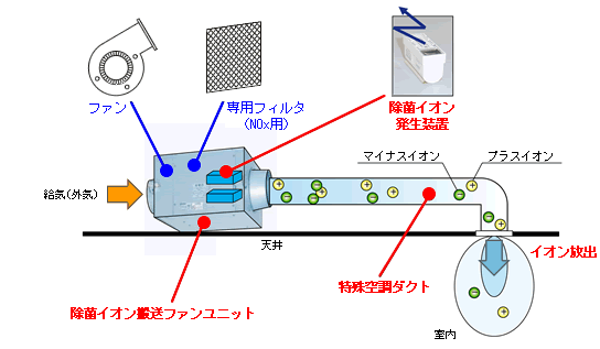 10数メートル先まで除菌イオンを搬送できる特殊空調ダクト