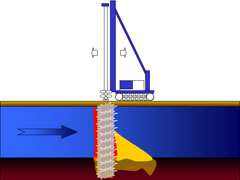 また、注入法の適用が困難な土質対策として、薬液を吐出しながら土壌を撹拌する「撹拌フェントン法」を開発しました。これによって今まで原位置での浄化が難しかった粘土・シルト質に含まれる汚染も処理することが可能です。